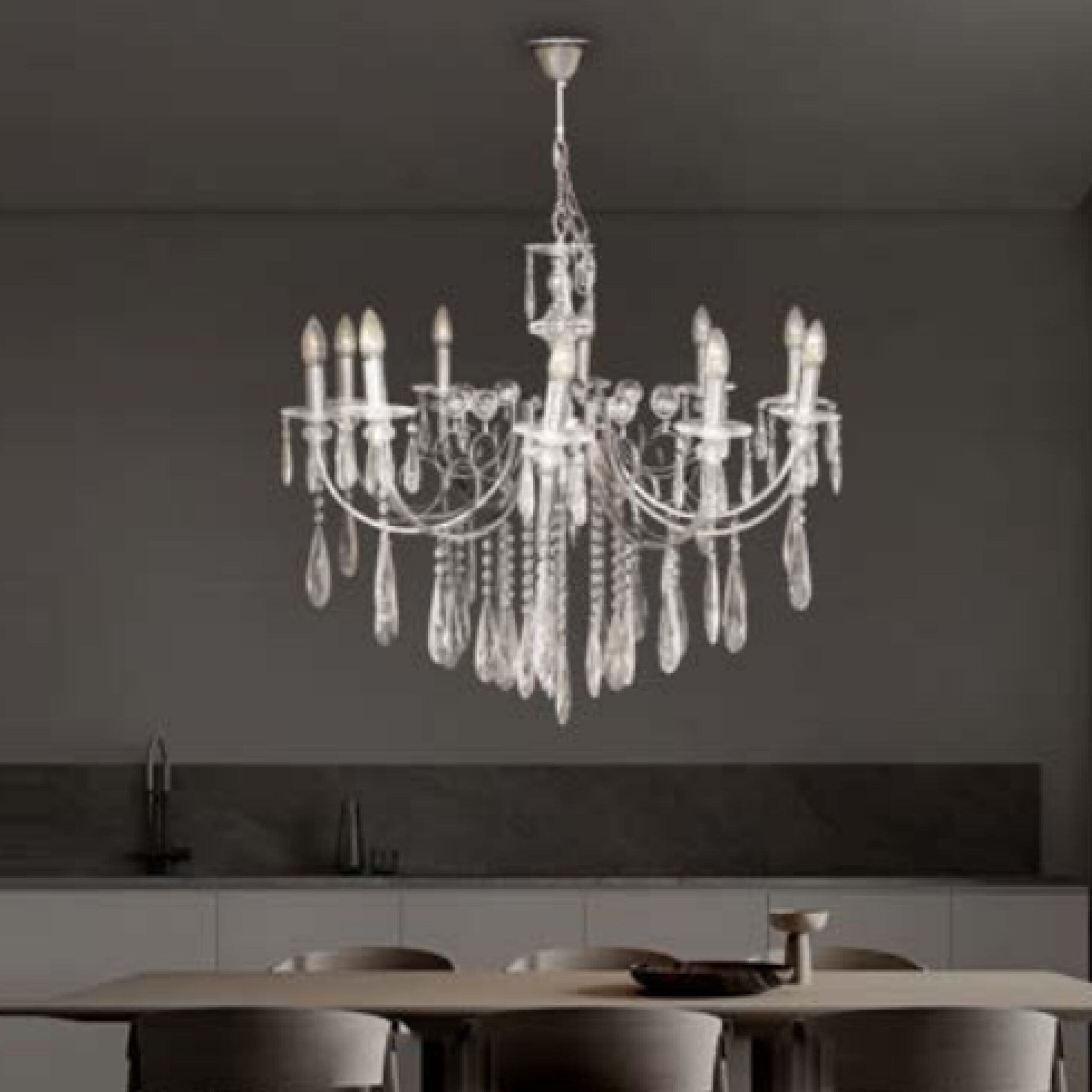 Añade un toque de lujo y distinción a tu espacio con el candelabro de cristal y acero. Su diseño combina la resistencia del acero con la belleza del cristal, creando una iluminación deslumbrante y refinada. Ideal para realzar cualquier ambiente, este candelabro se convierte en el centro de atención con su brillo elegante y estructura sofisticada.