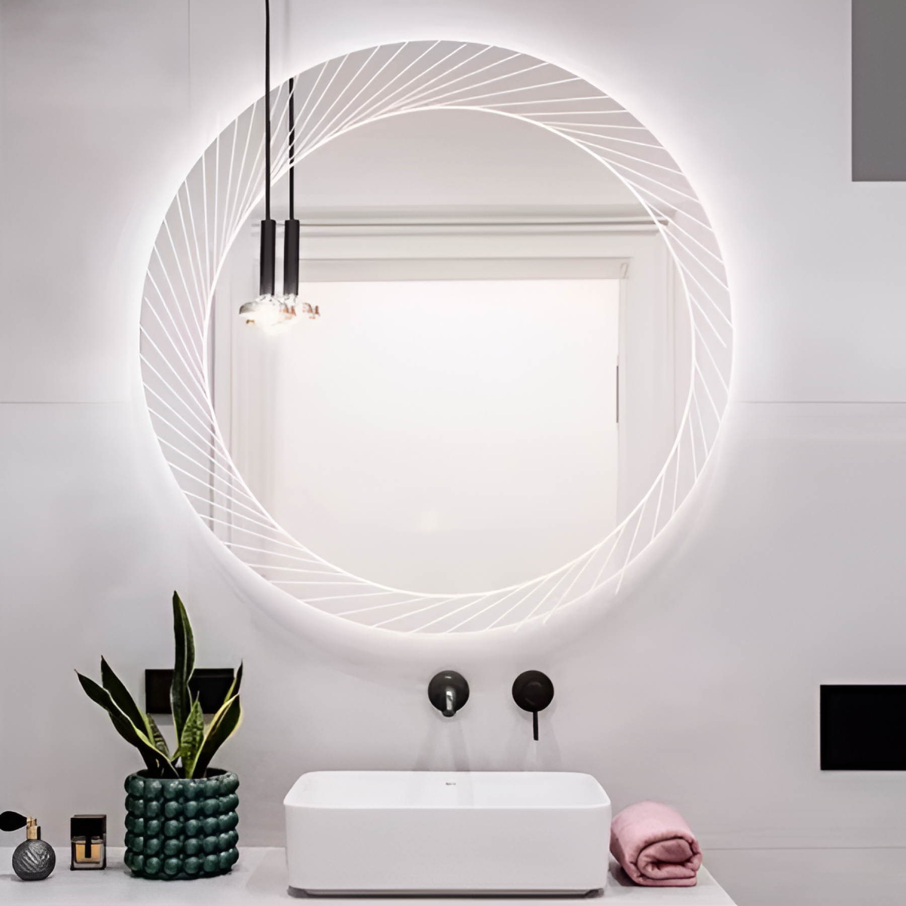 ESPEJO LED REDONDO CON BORDE DE LINEAS