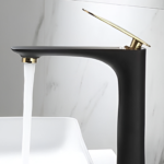 Renueva tu espacio con esta exclusiva mezcladora para lavatorio alto en acabado Gold. Su diseño elegante y sofisticado aporta un toque de glamour, creando un ambiente de lujo en tu baño. Gracias a su tecnología avanzada, garantiza un control preciso del caudal y la temperatura para una experiencia cómoda y personalizada.